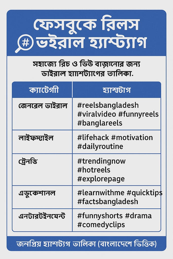 ফেসবুক রিলস ভাইরাল হ্যাশট্যাগ: সহজে রিচ ও ভিউ বাড়ানোর উপায়